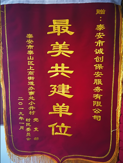 泰山聯(lián)合保安誠創(chuàng)分公司駐小井小區(qū)保安中隊,按照工作部署和要求,結合實際,扎扎實實地落實各項安保工作措施,全體駐勤保安隊員樹立了高度的愛崗敬業(yè)精神,充分發(fā)揮保安隊伍在區(qū)域秩序維護中的重要作用,圓滿完成各項工作任務,表現(xiàn)突出。經公司研究決定,授予該中隊為先進保安中隊,授予邱建國同志為先進中隊長,對該中隊給予通報表彰,并被泰安市泰山區(qū)上高街道辦事處小井村評為“最美共建單位”榮譽稱號,今后公司將全力做好各項保安業(yè)務工作,確保各項工作健康發(fā)展。