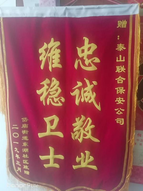 3月12日至3月14日,泰山聯合保安公司受岱廟辦事處、東湖社區(qū)委托,協助進京處理上訪事件,出色完成了任務,受到單位的高度評價,并贈了送錦旗。