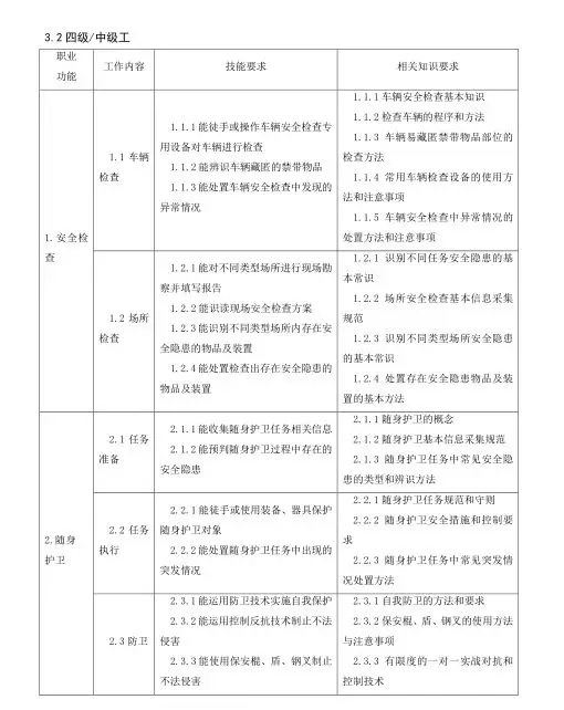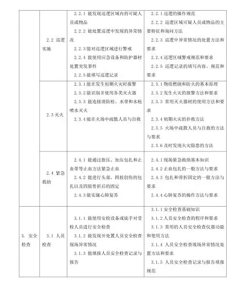 保安員國(guó)家職業(yè)技能標(biāo)準(zhǔn)目錄