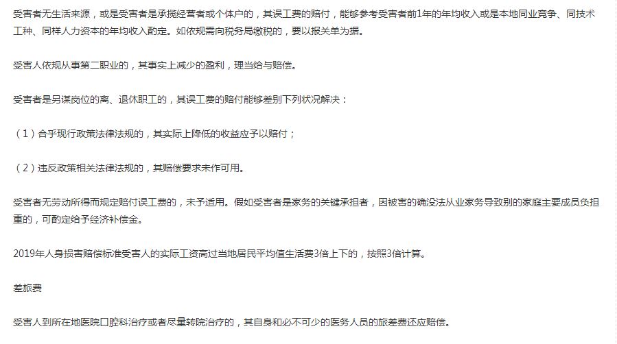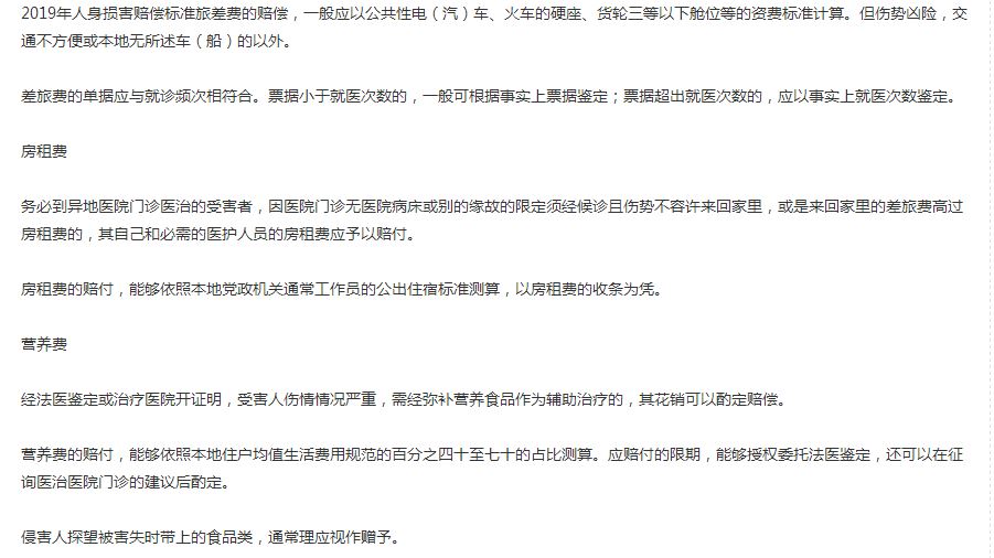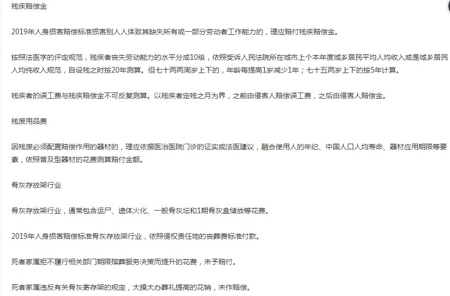 2019年人身損害賠償標準