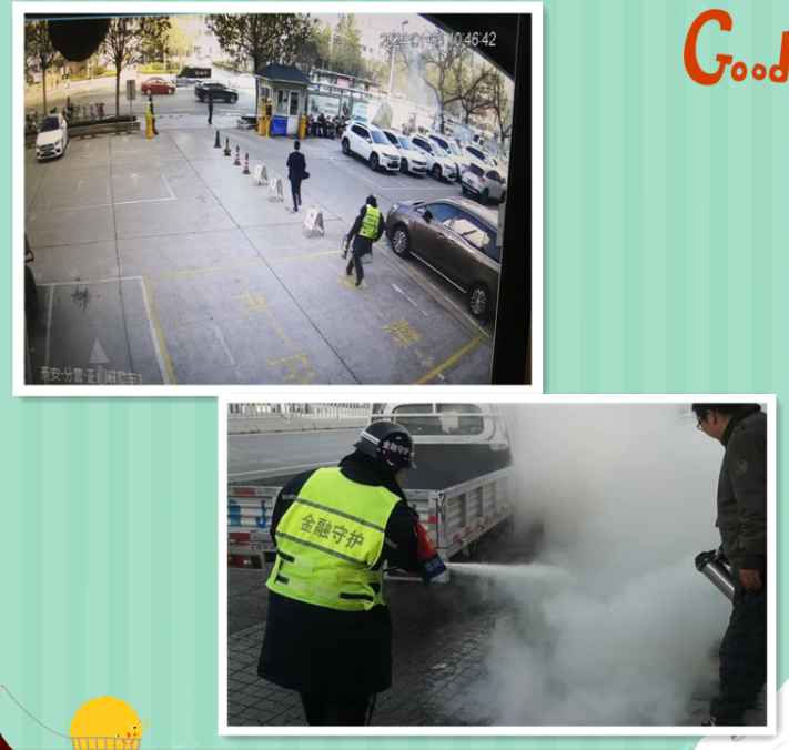 泰安市泰山聯(lián)合保安服務(wù)有限公司駐平安銀行泰安分行值班保安隊(duì)員譚榮振、張?chǎng)块、韓東見(jiàn)狀迅速報(bào)告并協(xié)助司機(jī)轉(zhuǎn)移可燃物品,運(yùn)營(yíng)管理部接到報(bào)告后迅速組織保安隊(duì)員進(jìn)行報(bào)警、滅火,由于處置果斷,事發(fā)僅僅3分鐘在消防應(yīng)急部門到來(lái)之前就將火勢(shì)撲滅,有效保護(hù)了群眾安全,未造成重大人員財(cái)產(chǎn)損失。在此次突發(fā)火災(zāi)中,平安銀行泰安分行安保人員快速反應(yīng)、果斷組織、及時(shí)介入、高效救援,使得火勢(shì)得以迅速控制,避免了更嚴(yán)重的后果。