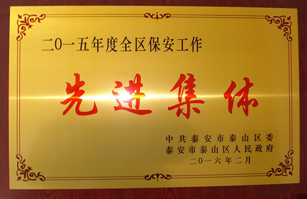 公司駐泰安市泰山區(qū)人民政府保安中隊(duì) 被評(píng)為“2015年度全區(qū)保安工作先進(jìn)集體”稱(chēng)號(hào)